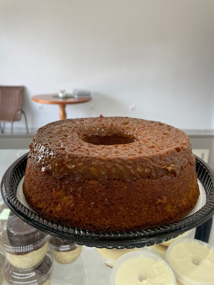 Uma verdadeira explosão de sabor! Nosso bolo de churros é feito de maneira especial: colocamos leite condensado na forma antes da massa, e enquanto o bolo assa, o doce de leite gruda na massa, criando uma cobertura cremosa e caramelizada. Além disso, damos um toque único à massa com uma pitada de canela, que deixa o sabor ainda mais autêntico, como um churros fresquinho. O resultado? Uma sobremesa irresistível, macia por dentro, com uma camada doce e saborosa que derrete na boca. 😋🍰